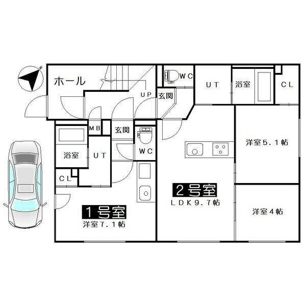 2LDK LDK9.7帖×洋室5.1帖×洋室4帖 |