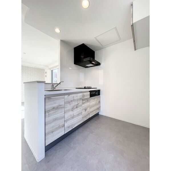 ○ 給湯器(都市ガス) ○ ガスコンロ(2口) ○ システムキッチン ○ 対面式キッチン ○ カウンターキッチン